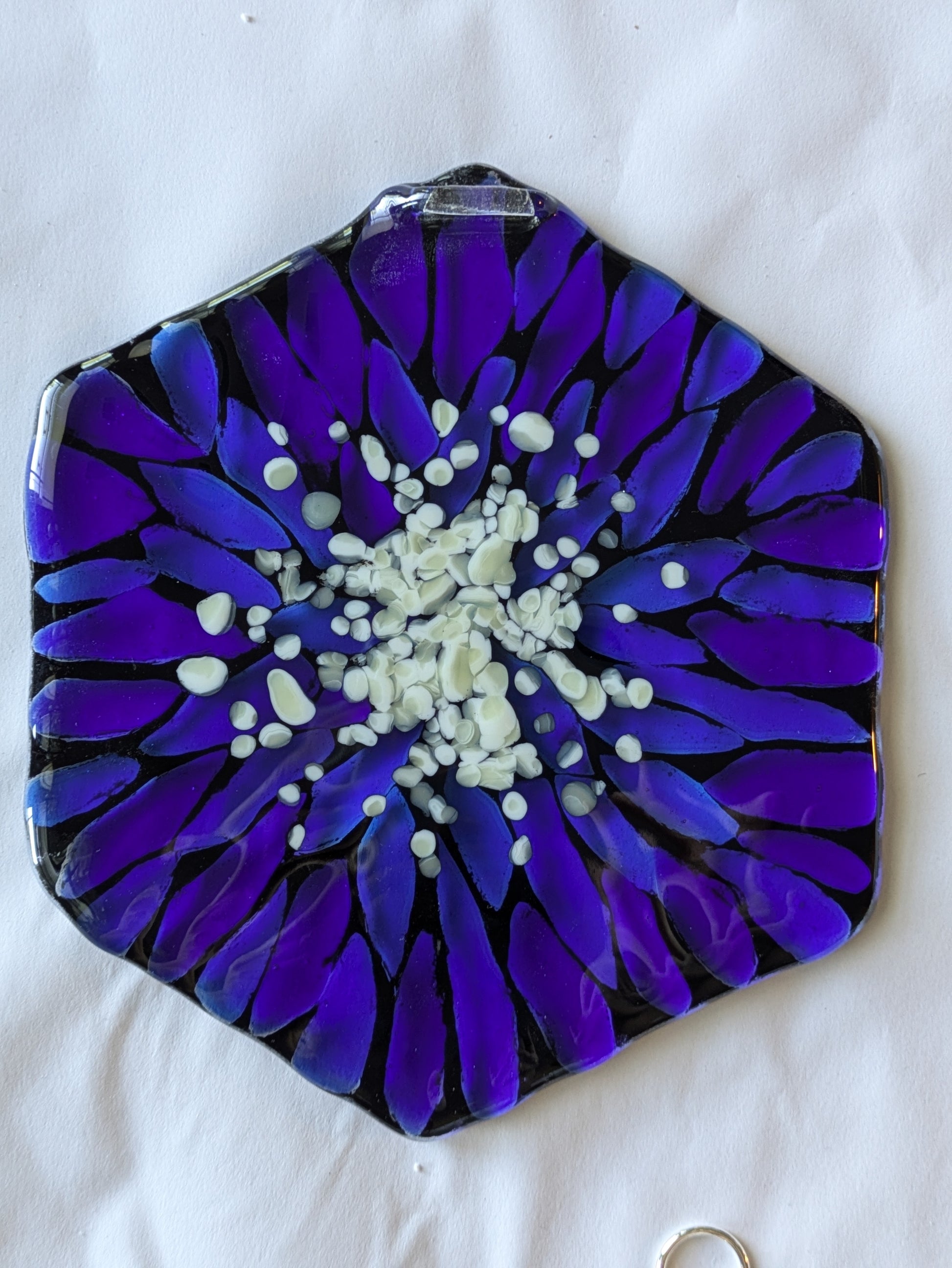 Discover calm and focus with the Blue Meditation Drishti, a handcrafted fused glass piece designed to enhance your meditation practice. Its soothing blue hues invite tranquility, helping you center your gaze and deepen mindfulness. Perfect as a personal meditation aid or a thoughtful gift, this unique glass art blends beauty with purpose to support your journey toward inner peace.